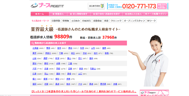 | ナースエージェント | 求人数は業界最大級の100,000件超え!コラム等のコンテンツが充実しているのも魅力。 |