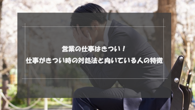 営業の仕事がきついのはなぜでしょうか? あなたの会社にも、「営業職を辞めたがっている人」や「毎日上司に怒られている人」がいるでしょう。 しかしやりがいを感じながら、毎日イキイキと働いている営業マンもいますよね。 仕事を楽… 続きを読む 営業の仕事はきつい!仕事がきつい時の対処法と向いている人の特徴